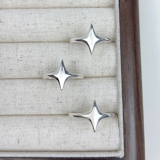 925 Sterling Silver Rings For Women Geometric Fine Jewelry Finger Adjustable Simple Star Ring For Party Birthday Gift