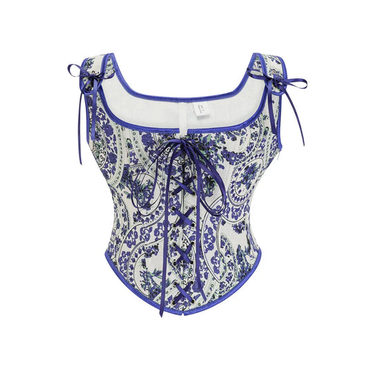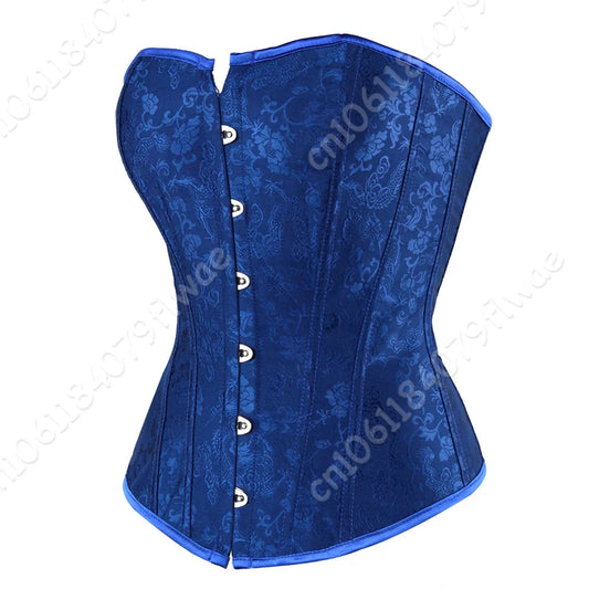 Corset Tops for Women Bustier Overbust Vintage Floral Corset Lingerie Satin Corset Blue