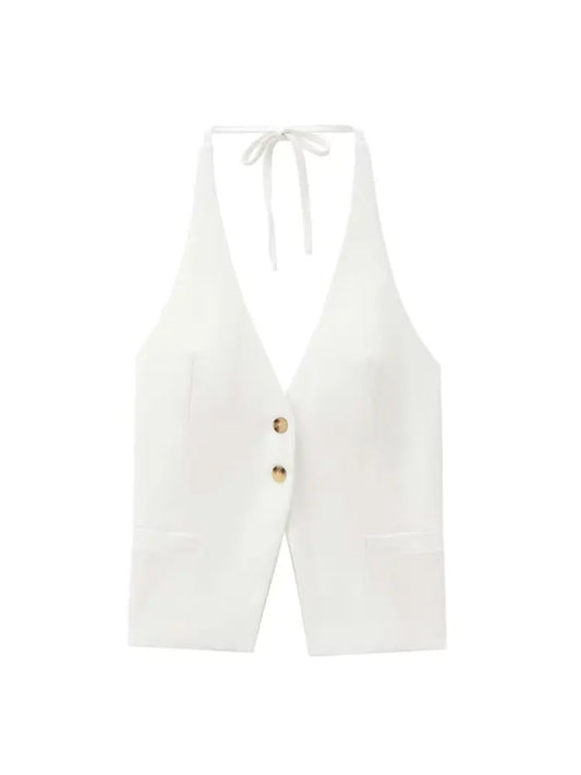 Front Button Tank Tops for Women, Tied Halter Neck, Backless, Female Camis, Sexy Fashion