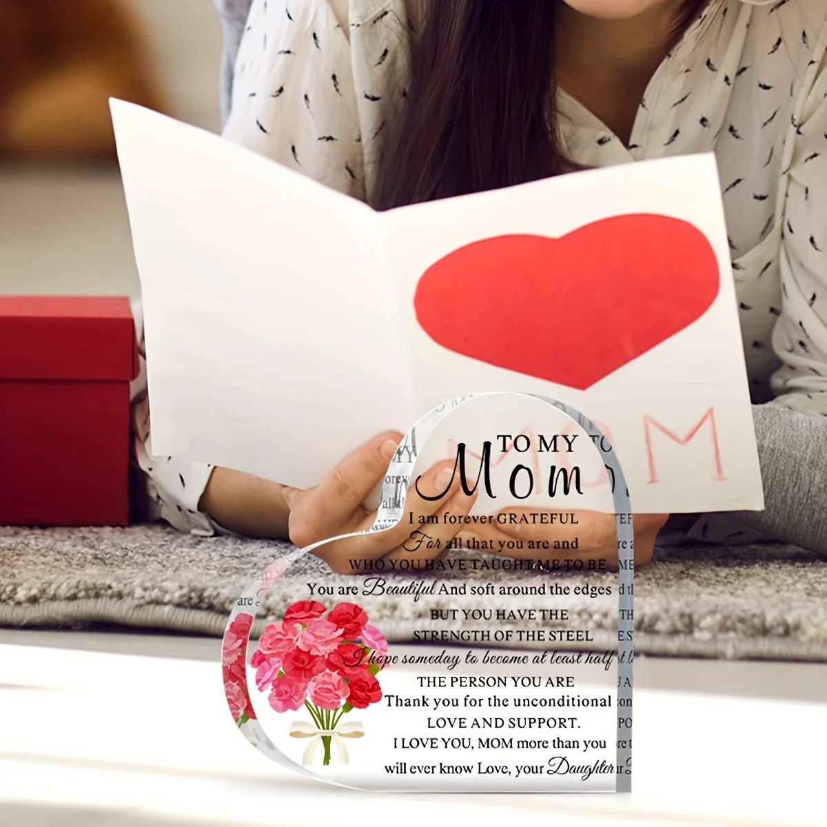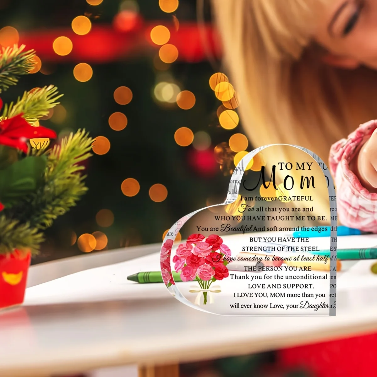 1pc Acrylic Mum Gift for Mum Birthday Gift for Mum Meaningful Gift Acrylic Heart Shaped Memorial Anniversary Gift