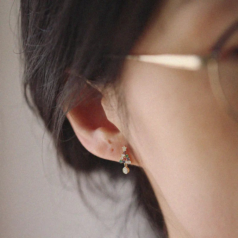 925 Sterling Silver Simple Christmas Tree Stud Earrings Women Pavé Color Crystals Christmas Fashion Jewelry Accessories