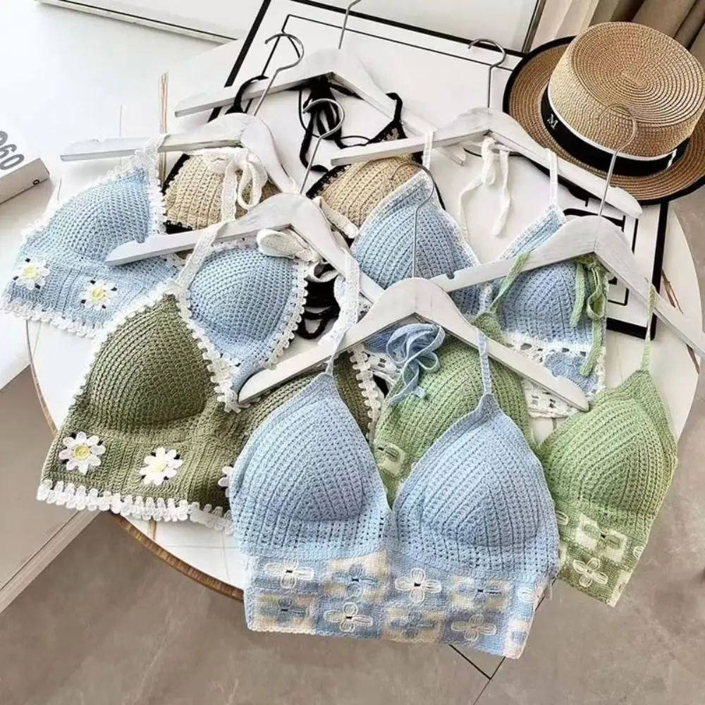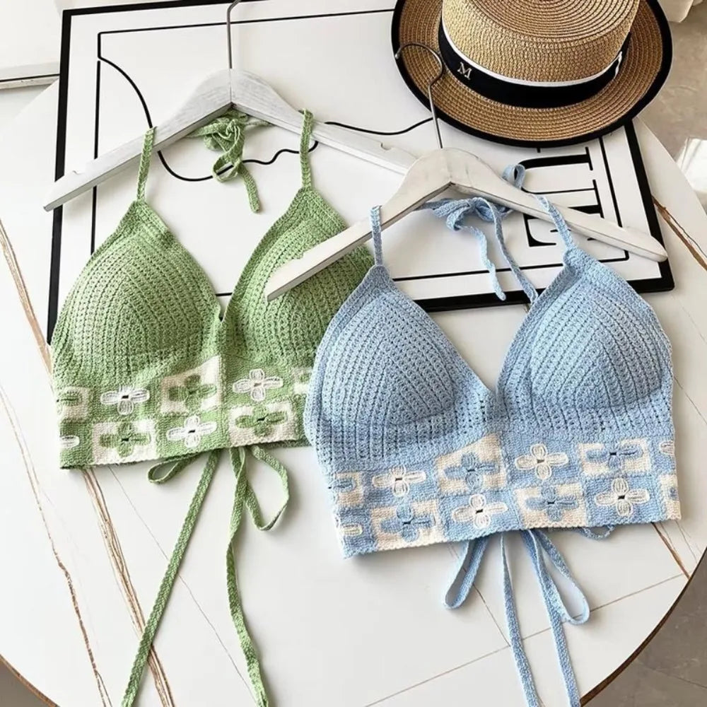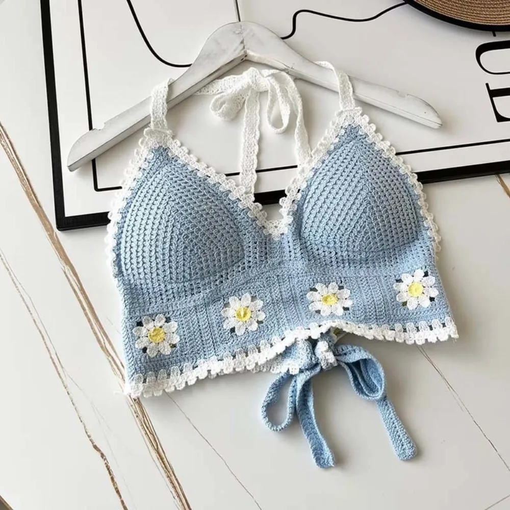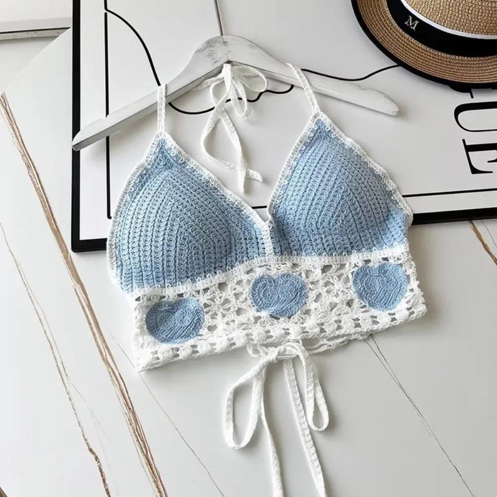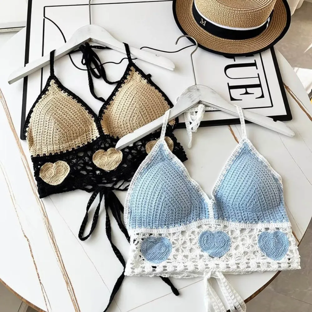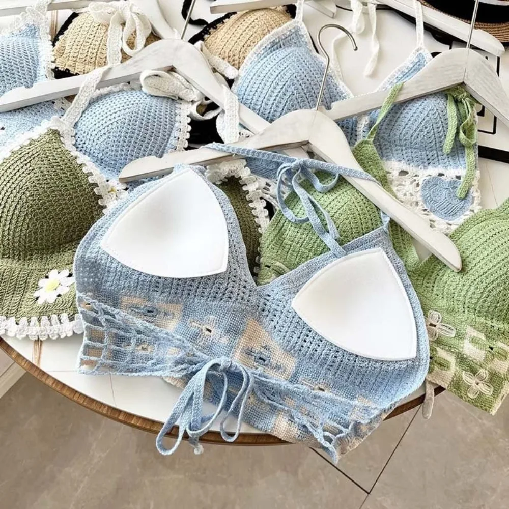 Beach Wear Women Swimwear Top Fashion Bohemian with Chest Pads Summer Sling Sexy Crochet Short Vest Street