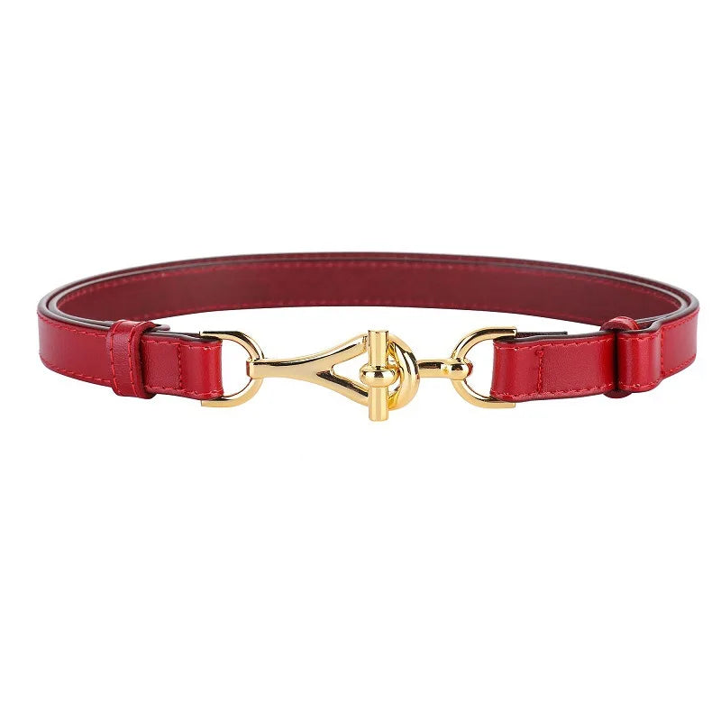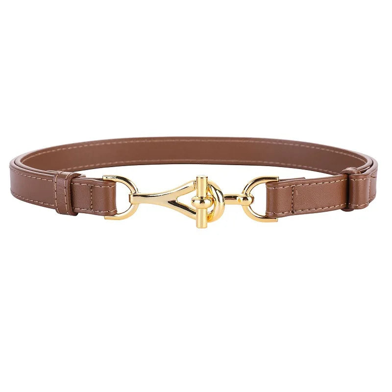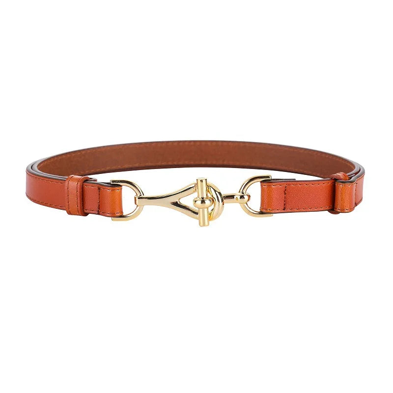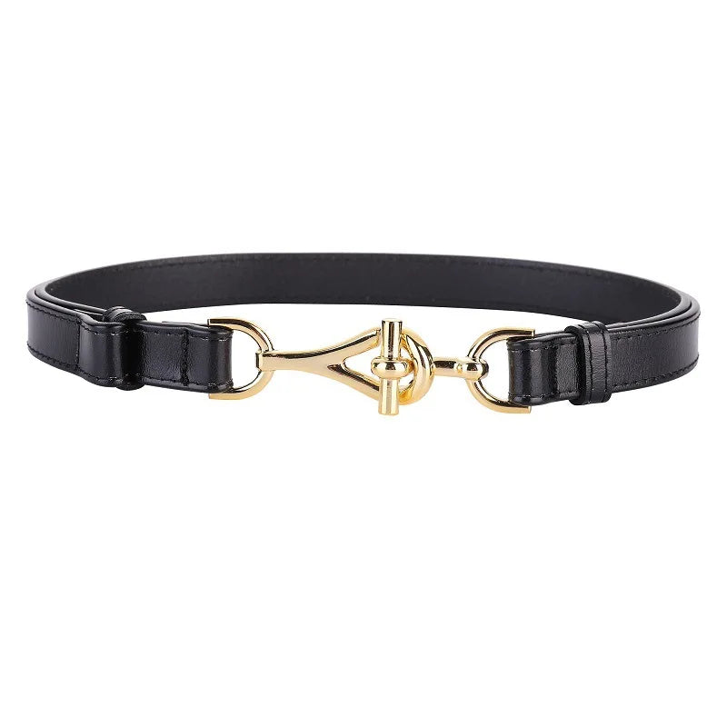 Genuine Leather Thin Women Belts Geometric Lock Buckle Elegant Waistband Classic Dress Coat Girdle For Women