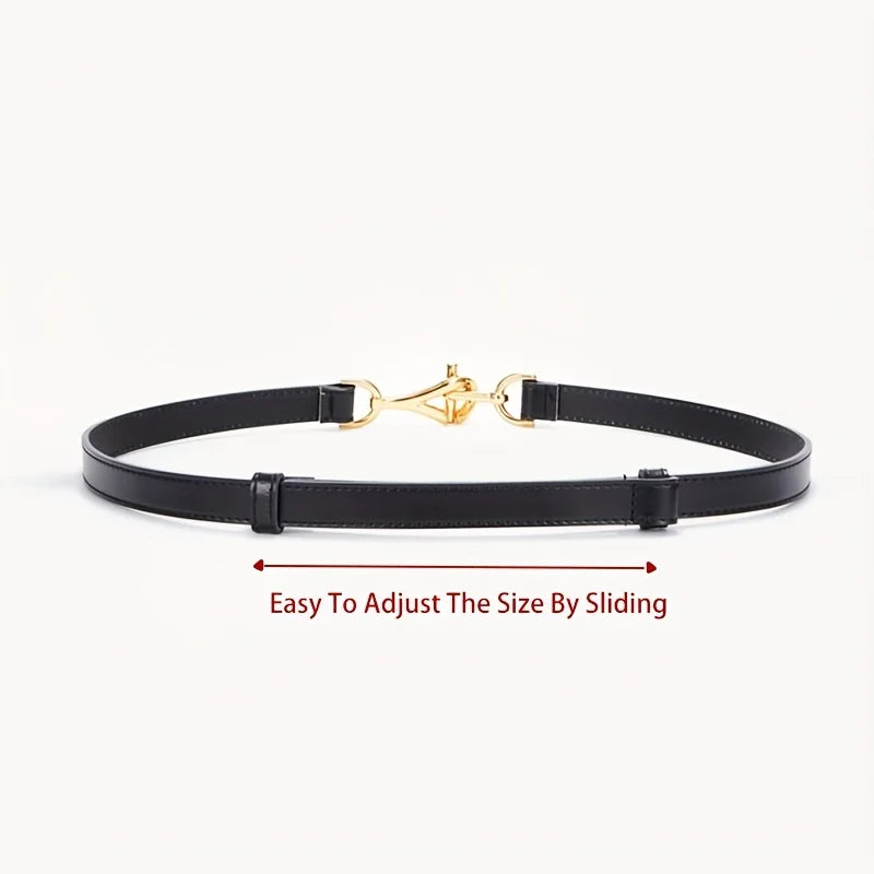 Solid Color Genuine Leather Thin Belt with Geometric Lock Buckle – Elegant Waistband, Classic Dress Coat Girdle for Women