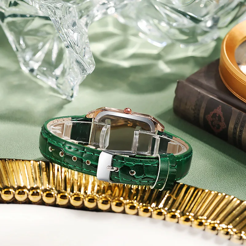 Ladies Quartz Watch Bracelet Green Dial Simple Rose Gold Dial Mesh Luxury Women Watches Brand Women Watches Fashion Square