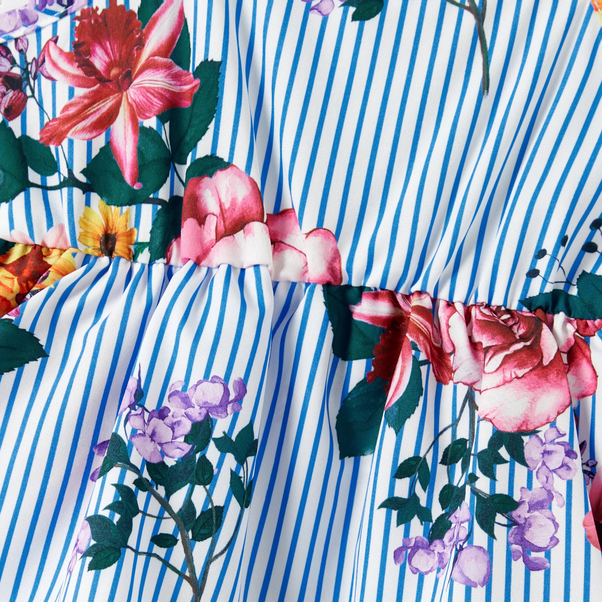 Coordinate effortlessly with the whole family in this denim blue set. Featuring a floral-printed shirt and a shirred top, paired with a lightweight thin-strap dress, this outfit blends comfort with effortless style. Perfect for summer days, vacations, or casual outings.