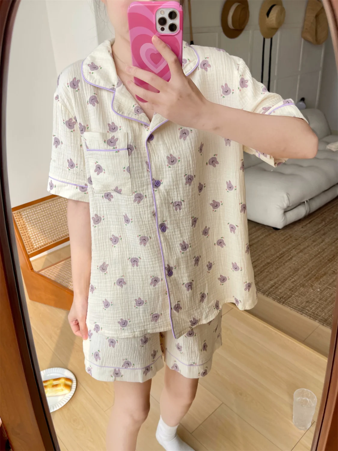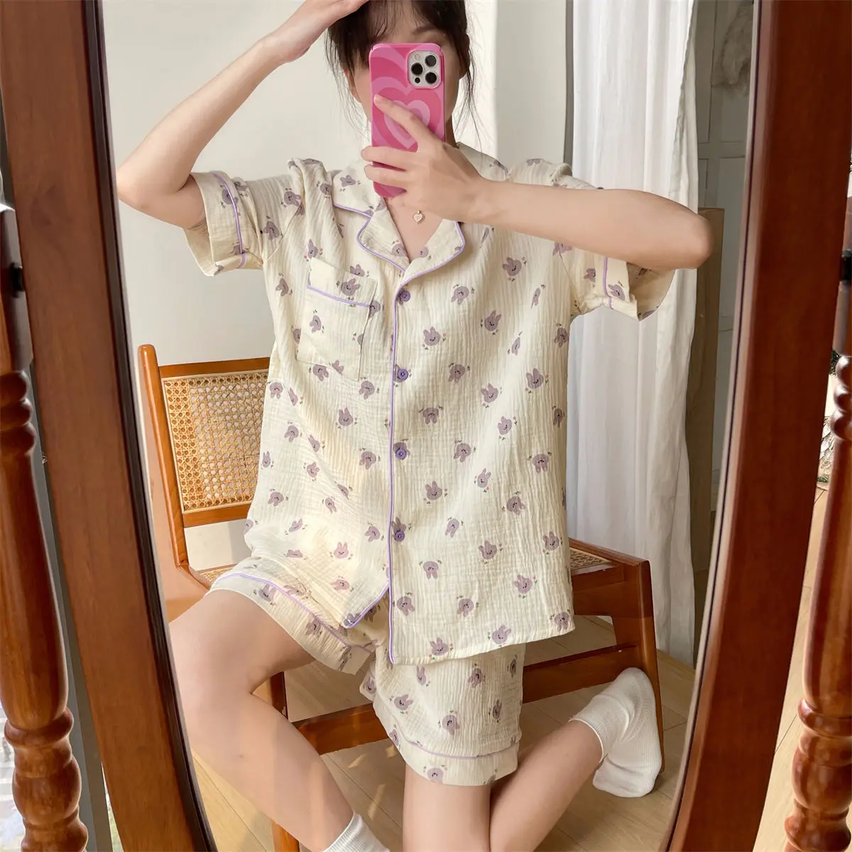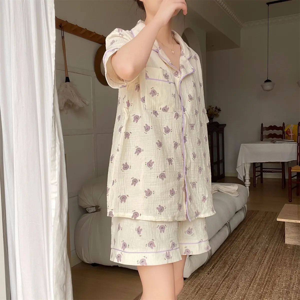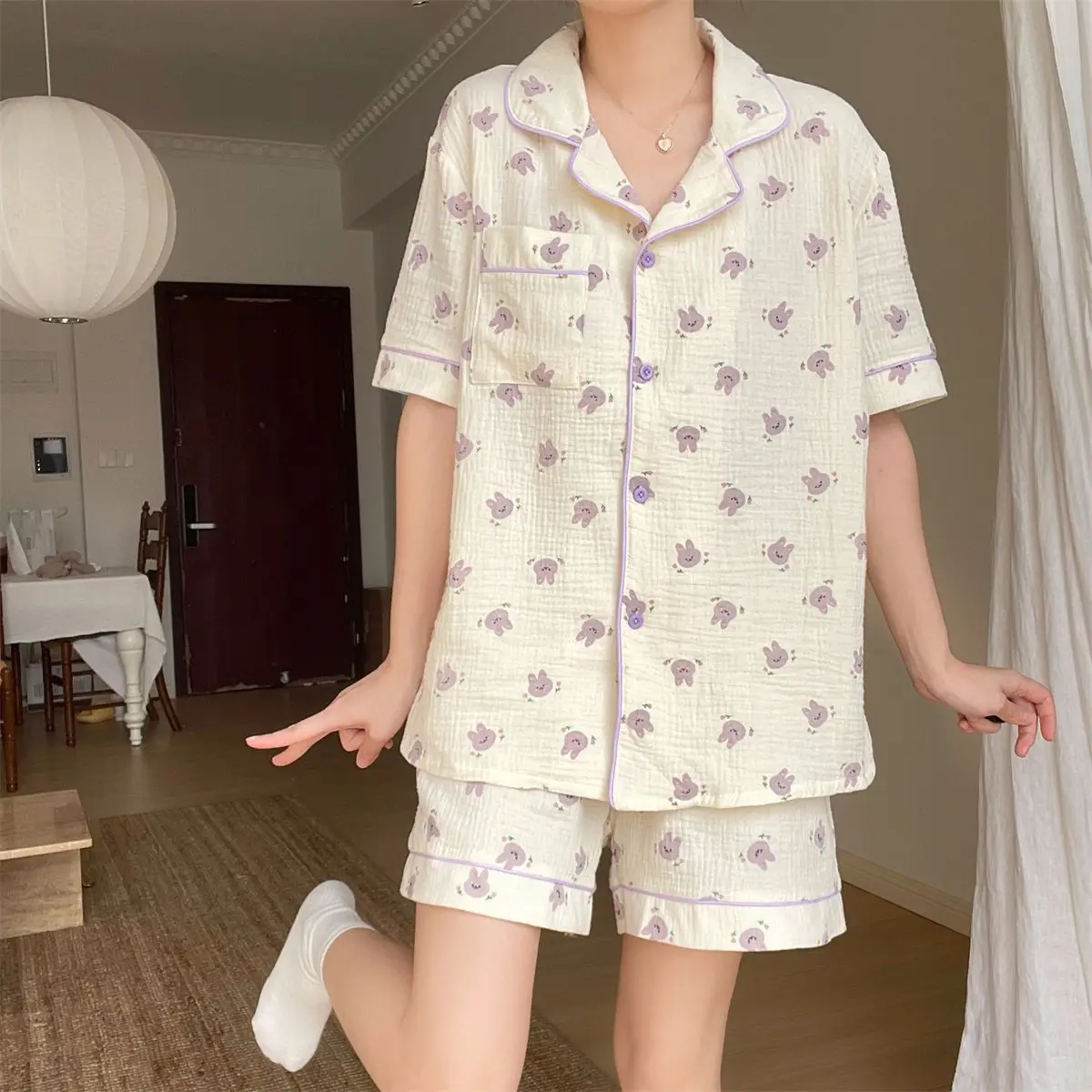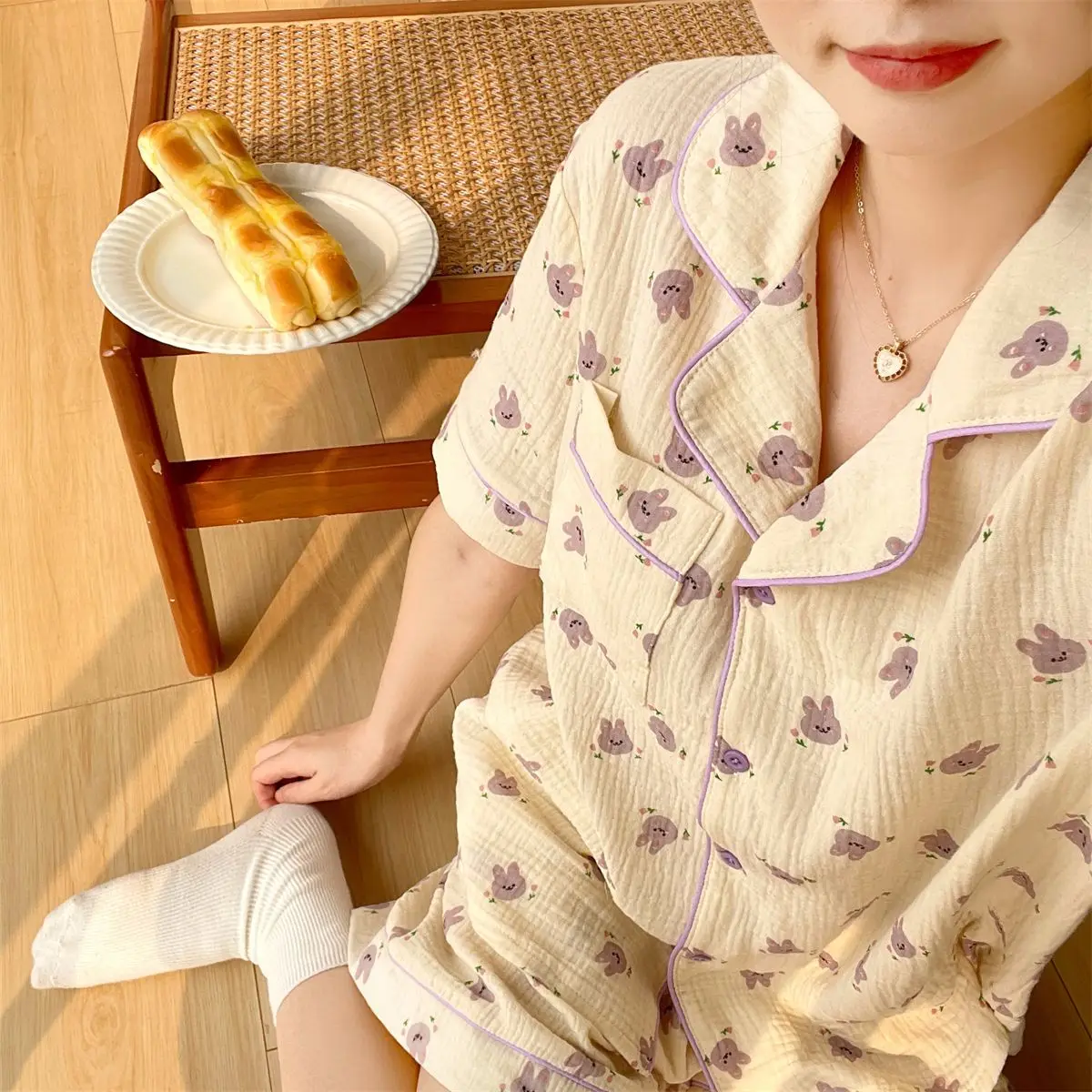 Rabbit Printing Ladies Pajamas Set Summer Kawaii Loungewear Women Green Homewear Cute Cartoon Korean Fashion Version Outfits
