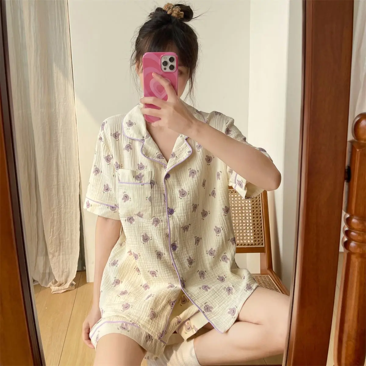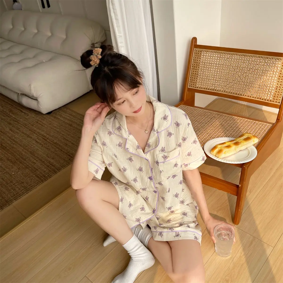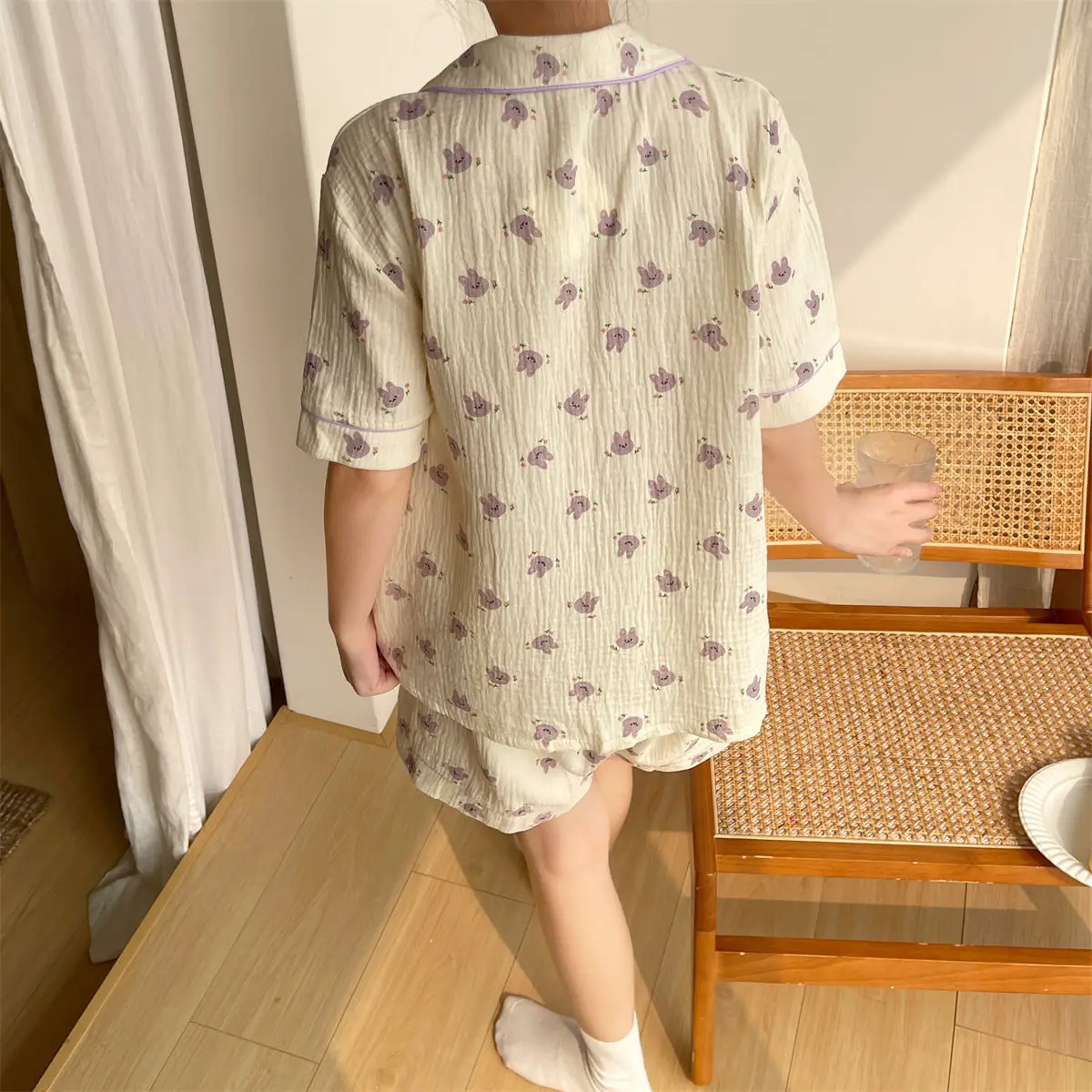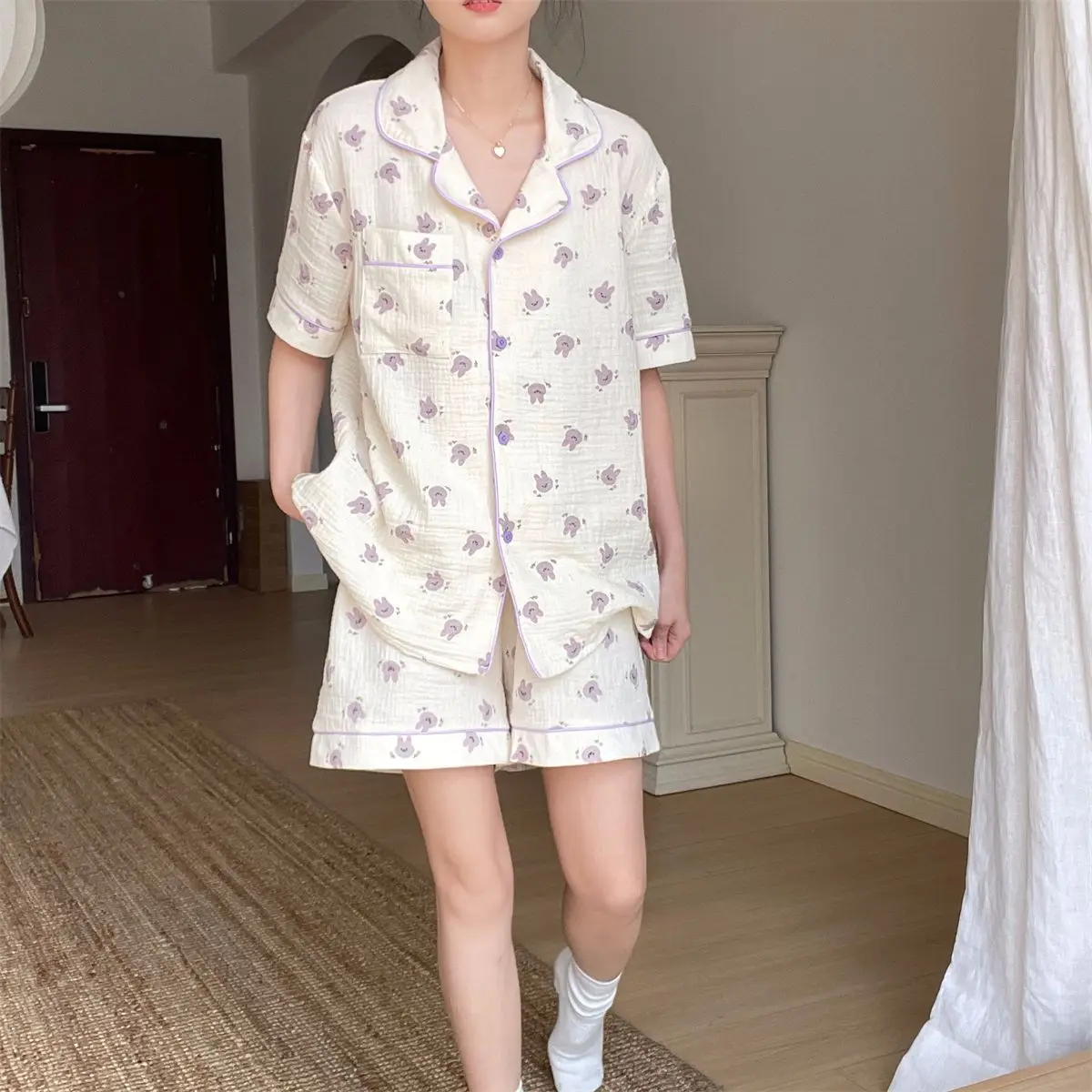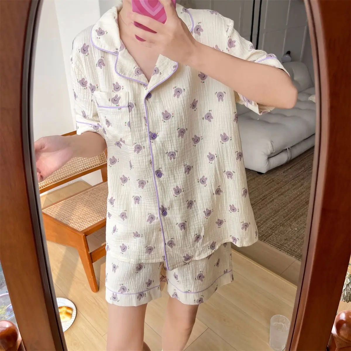 Rabbit Printing Ladies Pajamas Set Summer Kawaii Loungewear Women Green Homewear Cute Cartoon Korean Fashion Version Outfits
