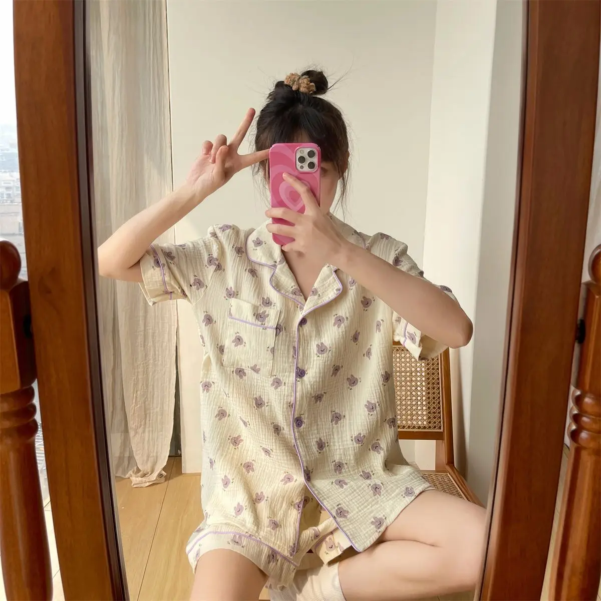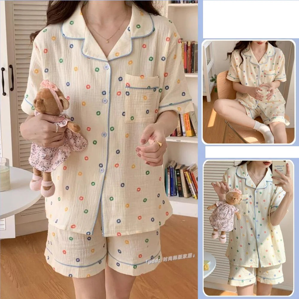 Stay cool, comfy, and playful with this women’s V-neck pajama shorts set, perfect for summer lounging or a relaxed night in.